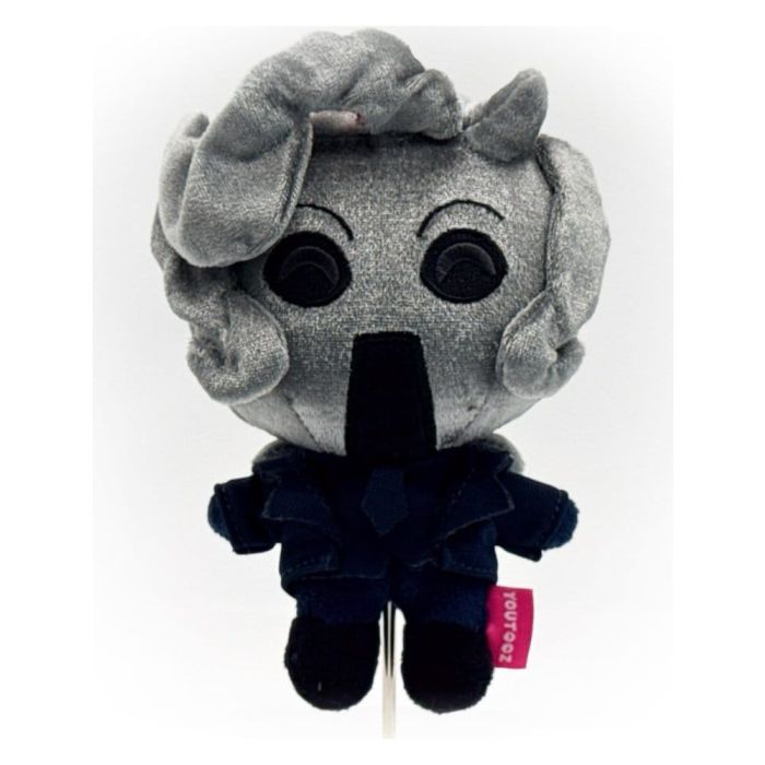 The Sermon's about to begin, and who better to play along with than the Nameless Ghoulette?! Standing at 5 inches tall with sunken black eyes staring out from the silver mask covering her face, that has long curling hair and horns poking out from the top, she wears an all black suit with a matching tie hanging from the neck. This keychain is packed to the seams with 100% PP cotton and is made of minky and brushed shiny materials with a keyring attached to the top by a pink tag, absolutely perfect to hang from your backpack, purse, pants or wherever you want to show you're ready to rock!