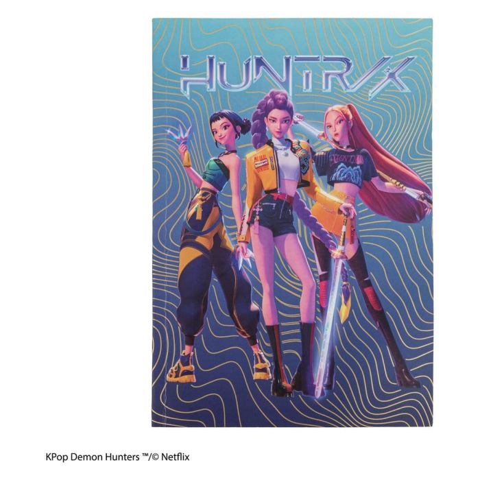 This is a softcover notebook from the KPop Demon Hunters license. It features the HUNTR/X design.