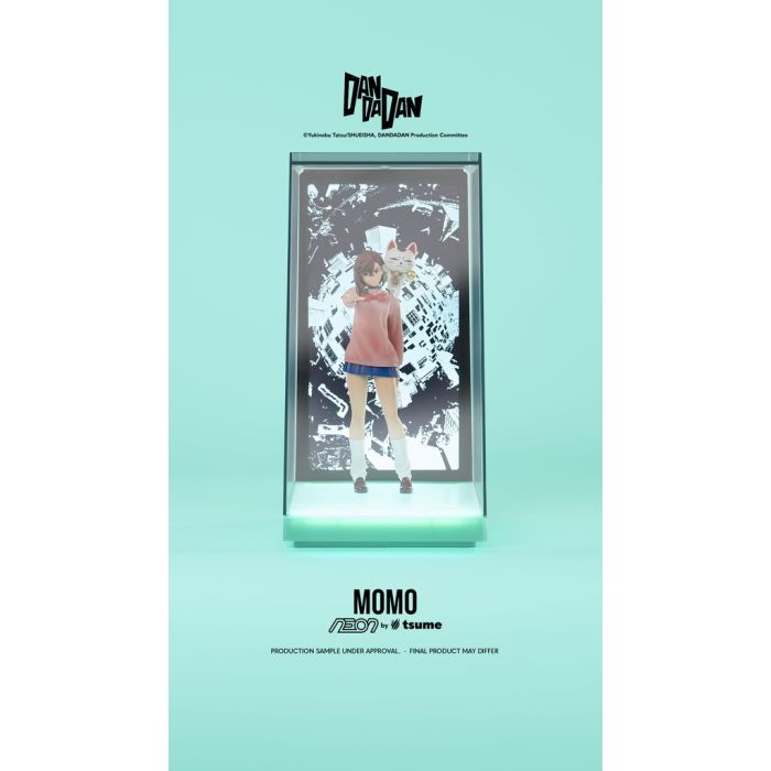De charmante Momo komt tot leven met zachte, sfeervolle verlichting die haar unieke stijl en uitstraling extra dimensie geeft. De NEON display zet haar pose en aanwezigheid in de spotlight, waardoor het een eyecatcher wordt in elke verzameling. — Een must‑have voor Dandadan‑liefhebbers die van esthetische presentatie houden.