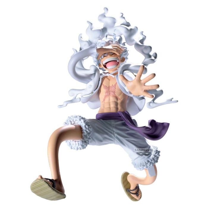 From the popular anime series 'One Piece' comes this officially licensed PVC figure from the 'Grandista' line. It features Monkey D. Luffy in his Gear 5 form, stands approximately 27 cm tall and comes in a printed box.