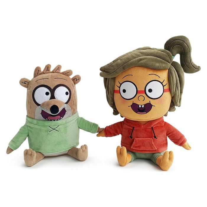 You know what the park was missing, a little bit of Valentine's day love! And Rigby and Eileen are more than happy to show us how it's done! Sitting side by side at 9 inches tall with cheery open smiles as they hold hands tenderly, Rigby looks over with huge round eyes that are surrounded with dark circles as short hair fans to the side between small ears and he wears a green sweater with a long striped tail trailing behind him. While next to him, Eileen looks back with blushing pink cheeks and brown hair that's been pulled into a ponytail at the side of her head as she wears a red hoodie and pale green pants. This plush is packed to the seams with 100% PP cotton and is made of the softest minky material, absolutely perfect for cuddling or sharing the love with!