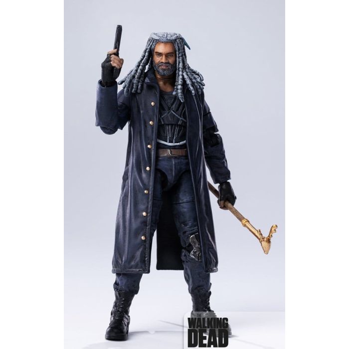 This EXQUISITE MINI Series Ezekiel action figure stands about 10.5CM tall, faithfully recreating his appearance from the TV series. Features a detailed head sculpt with his signature dreadlocks and determined look, comes dressed in a dark trench coat, tactical vest, and combat pants-capturing his mix of authority and readiness for battle.