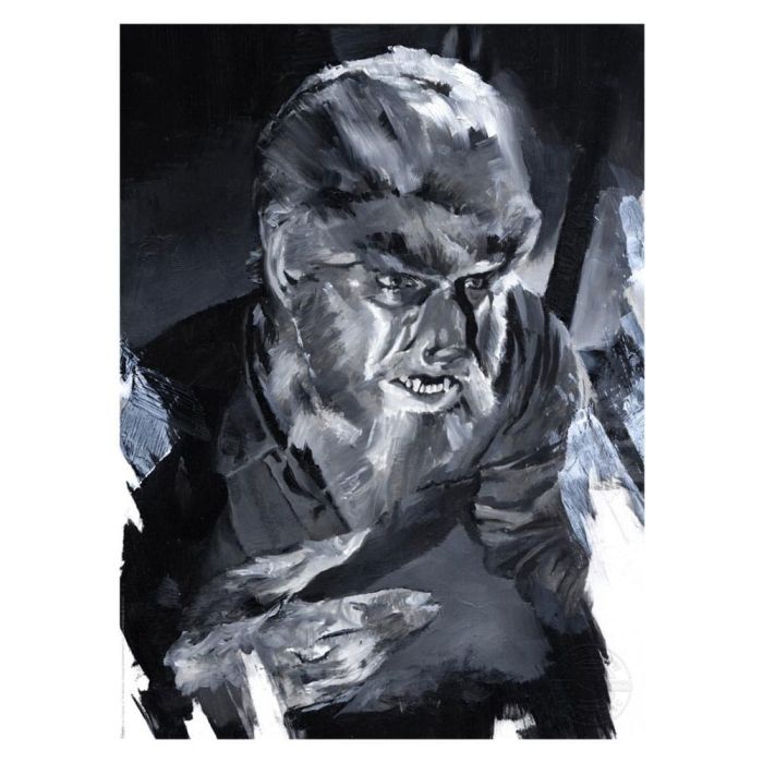 Each The Wolf Man Fine Art Print features an embossed Sideshow Seal of Authenticity and is faithfully reproduced from the artist's original oil painting that was displayed and sold during the Sideshow x CODA Universal Monsters gallery exhibition. Available unframed or in a custom framed presentation, this horror movie artwork makes a stunning addition to any fan's art collection.