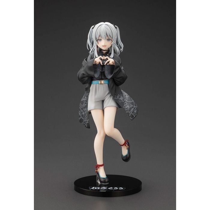 Raising one leg while forming a heart with her fingers, this piece perfectly captures her cute and cheerful personality.