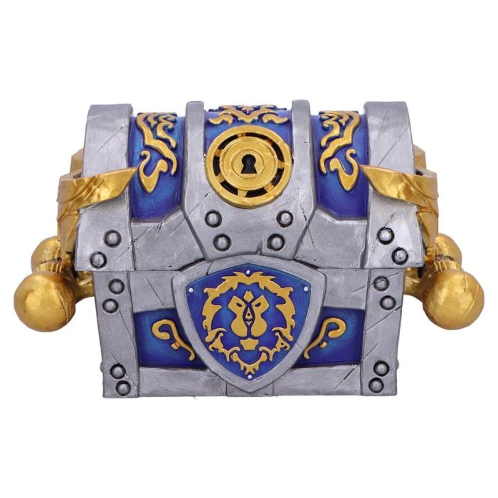 A collectible storage chest inspired by the noble Alliance faction from World of Warcraft, designed to resemble a treasure chest from Azeroth.